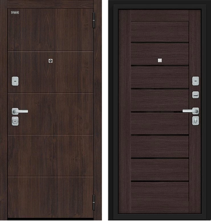 Надежная входная Дверь Браво Прайм/BChrome Almon/Wenge Melinga премиум класса по цене 40 011 руб. Большая толщина стали защитит от проникновения в ваш дом, квартиру или коттедж. Используется очень качественная фурнитура: замки, цилиндры, ручки, защелки. Покрытие и отделка двери изготовлено под внимательным контролем производителя. Дверь имеет долгий срок службы и гарантию.